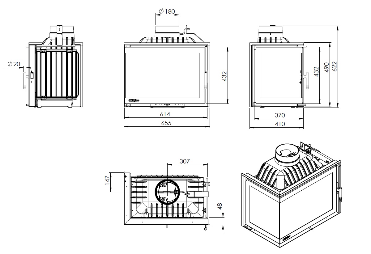 Kamineinsatz Etna hat eine Leistung von 13 kW und passt ideal zu den meisten Innenräumen mit unterschiedlichen Heizbedürfnissen. Parma ist aus hochwertigem Gusseisen und Stahl gefertigt und verfügt über eine vitrokeramische Scheibe, die bis zu 750 Grad Celsius hitzebeständig ist. Der Einsatz ist mit einem Rauchrohrschieber, einem Vermiculit-Deflektor, einem Aschekasten und der Möglichkeit für einen Außenluftanschluss ausgestattet. Dank seiner kompakten Abmessungen kann der Einsatz in jedem Raum installiert werden, sowohl in modernen als auch in traditionelleren Einrichtungen. Das hochwertige Gusseisen gewährleistet eine hervorragende Wärmespeicherung.